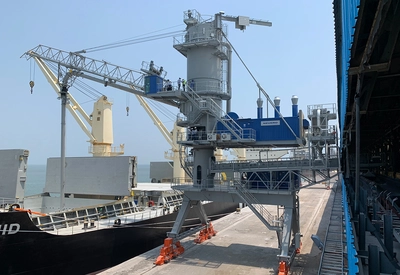 Combiport Kombi-Ent- & Belader: Entladekapazität bis zu 1000 t/h (Weizen, 0,75 t/m3)